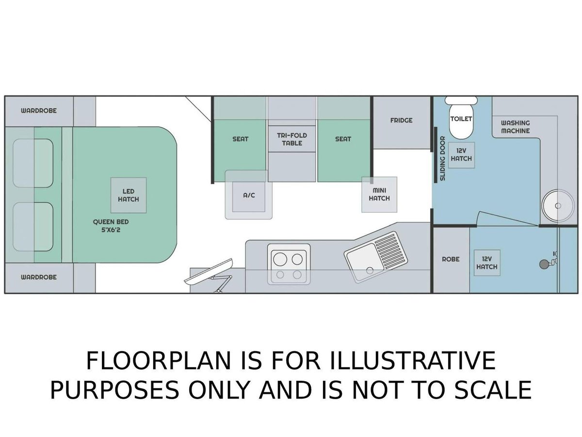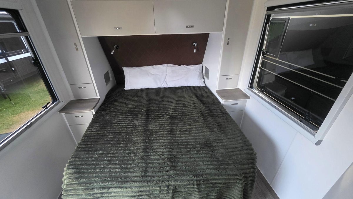 Premium Features, Smart Layout and a Comfortable, Bright InteriorThis van offers a thoughtfully designed interior featuring a comfortable island bed, a generous sized dinette and a fully equipped kitchen with a large fridge, cooktop, microwave and ample storage for when you want to prepare meals on the road. The full ensuite—with a separate shower, toilet and washing machine - adds privacy and convenience, while the dual-axle design ensures smooth, stable towing across a wide range of conditions. With premium cabinetry, LED lighting, excellent insulation and modern finishes throughout, this van is perfect when you want practicality, comfort and dependable touring in one beautifully balanced package.