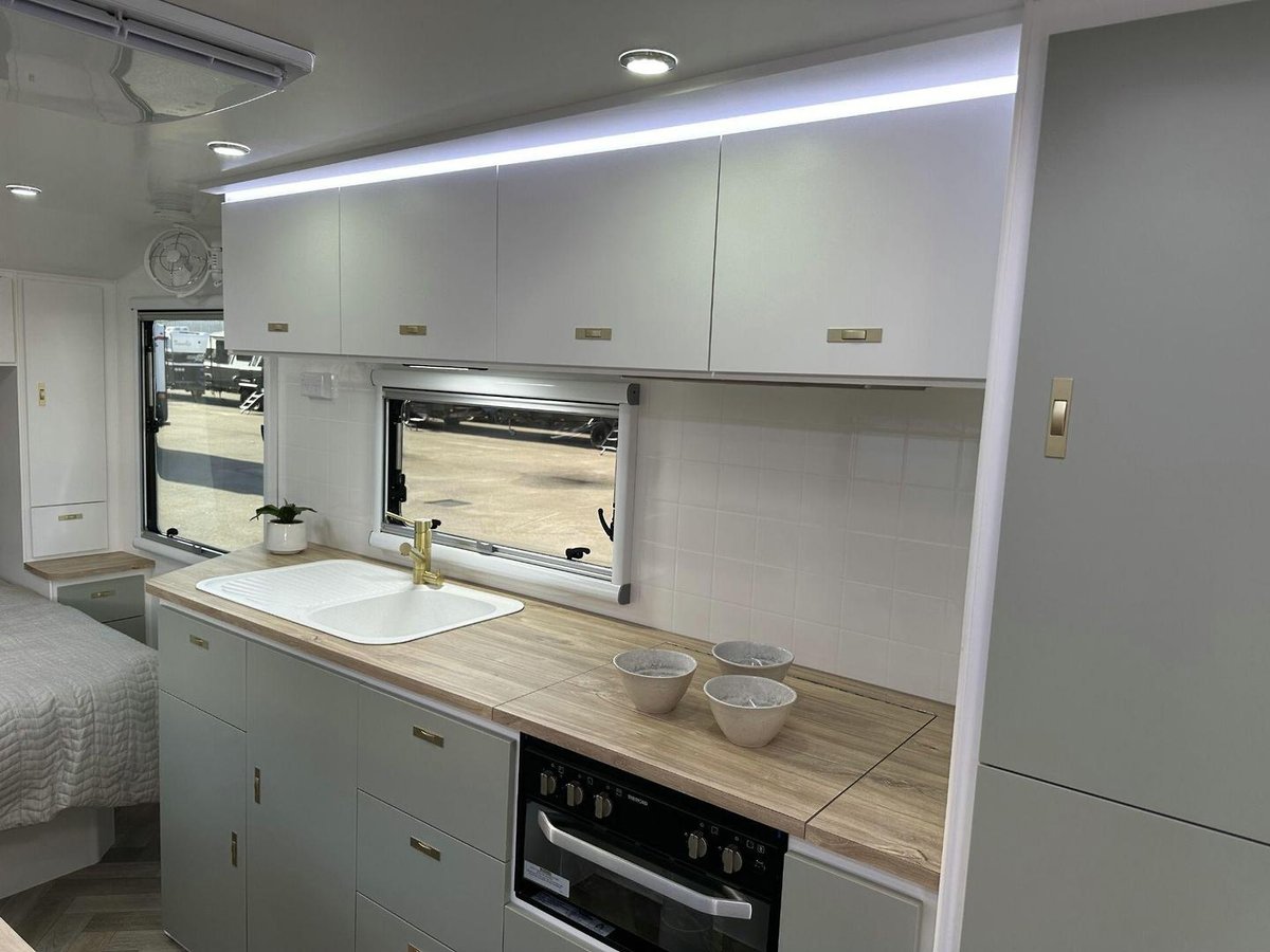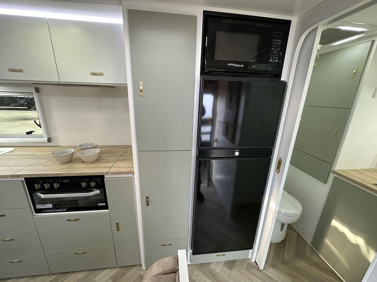 Design RV has spent years designing and perfecting this range to bring you the most comfortable and affordable travel experience available on the market today. This modern range has been fitted with A/C, an entertainment system, TV, microwave and other high end appnces. Each caravan comes furnished with an ensuite, shower and toilet, fully equipped kitchen and a spacious layout.