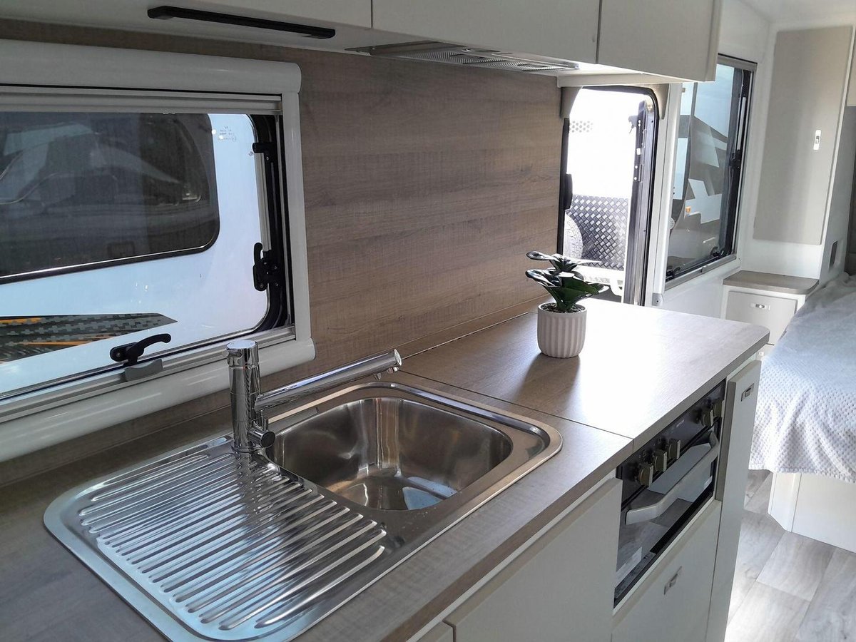 LED lighting throughout the caravan provides a bright, energy-efficient environment for day and night living.
