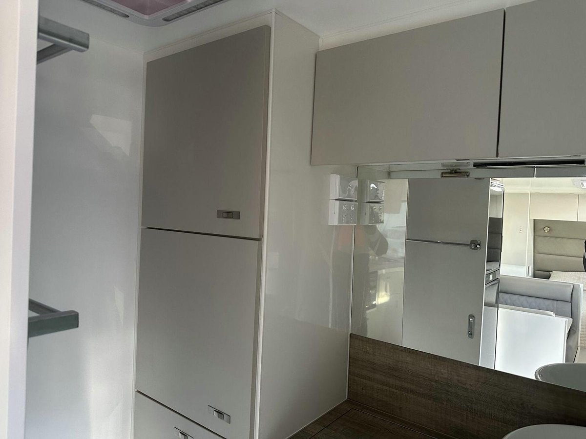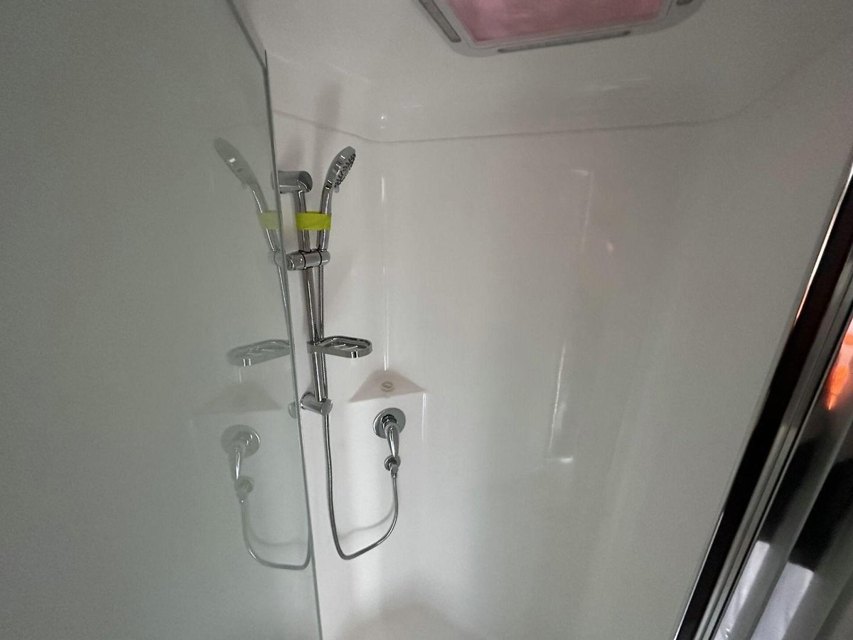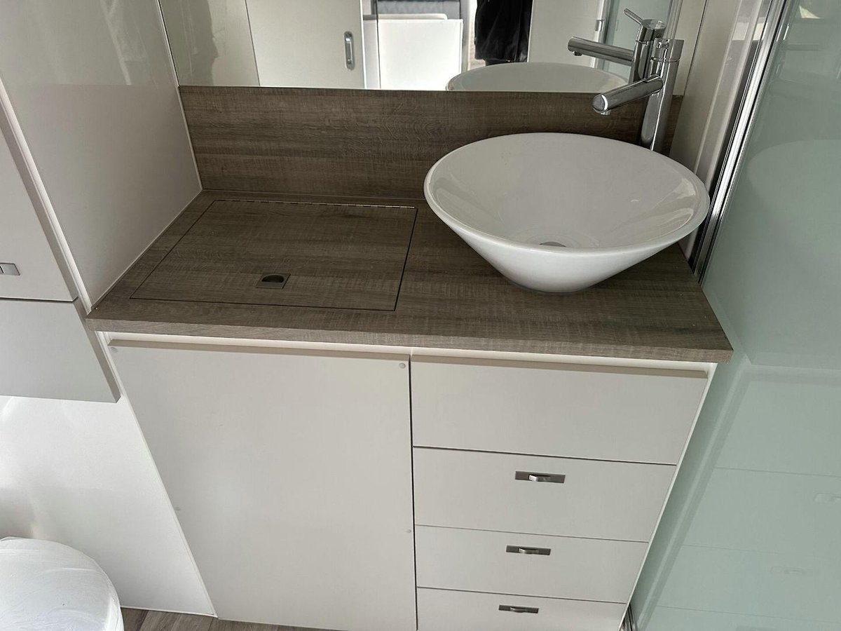 Stepping inside the A-Class V1-1, you are greeted by a meticulously designed interior that emphasises comfort and practicality. The caravan boasts a full ensuite with a separate shower, toilet and washing machine, offering convenience and privacy throughout your travels. The interior is enhanced by double-glazed windows with midge screens and block-out blinds so you can sleep in once the holiday starts.