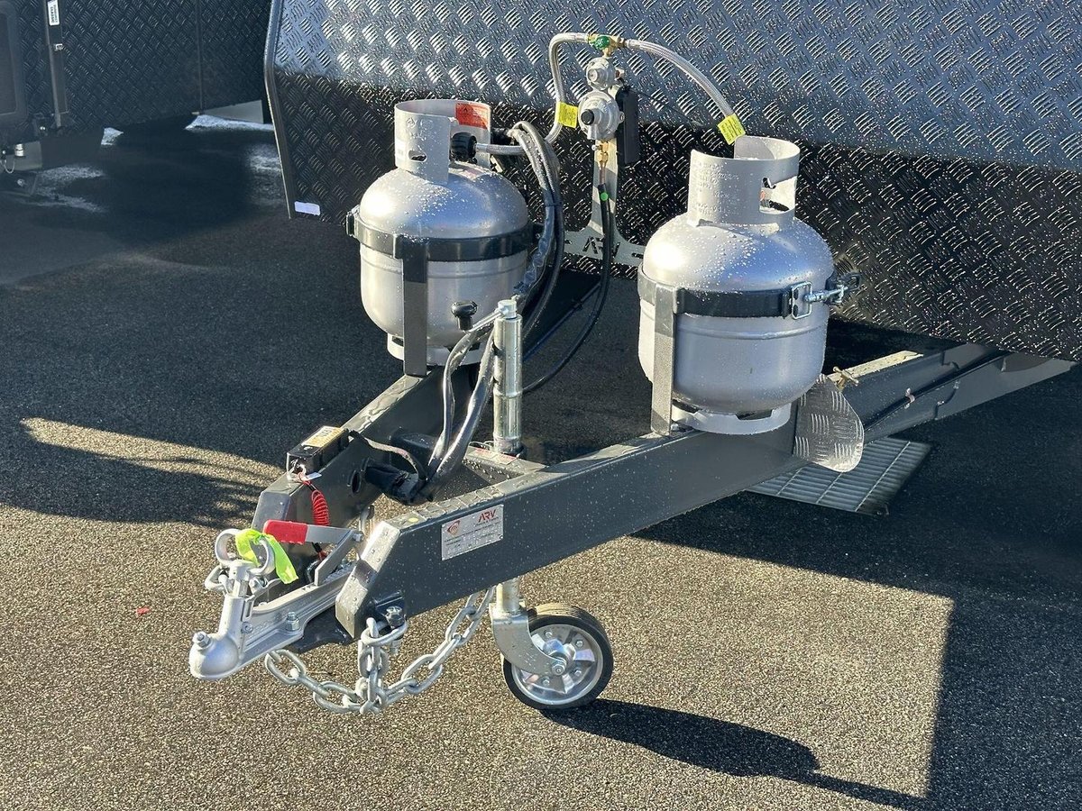 The exterior of the V1-1 is built to endure, featuring a heavy-duty 6" A-frame, front and side checker plate protection and a 2" chassis riser for additional clearance. It’s equipped with a full-through galvanised tunnel boot for extra storage and an external gas bayonet for convenient outdoor cooking. Safety and ease of use are further supported by a reverse camera and car kit, while the 210W roof-mounted solar panel and twin 95L water tanks give you the independence needed to push the boundaries of off-grid adventure.