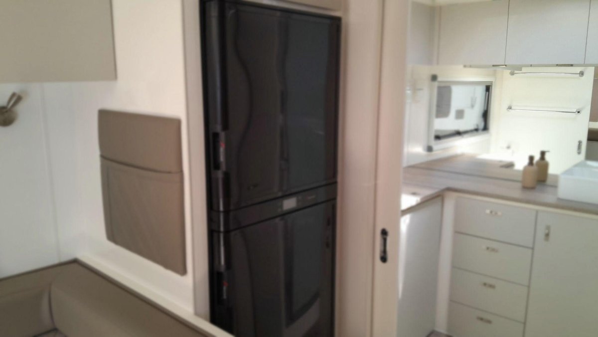 Inside, the A-Class V7-7 impresses with its bright, open layout and high-quality finishes throughout. The queen island bed provides a luxurious retreat, while the generous seating area creates a comfortable space to unwind, dine, or entertain. The fully equipped kitchen includes a large fridge, cooktop, microwave, and ample storage, making meal preparation simple and enjoyable on the road. A full ensuite with a separate shower and toilet adds convenience and privacy, while double-glazed windows, reverse-cycle air conditioning, LED lighting, and durable cabinetry ensure year-round comfort. Built on a strong chassis with reble suspension and practical exterior features like a roll-out awning and spacious tunnel boot, this caravan is ready for touring across Austra with confidence.