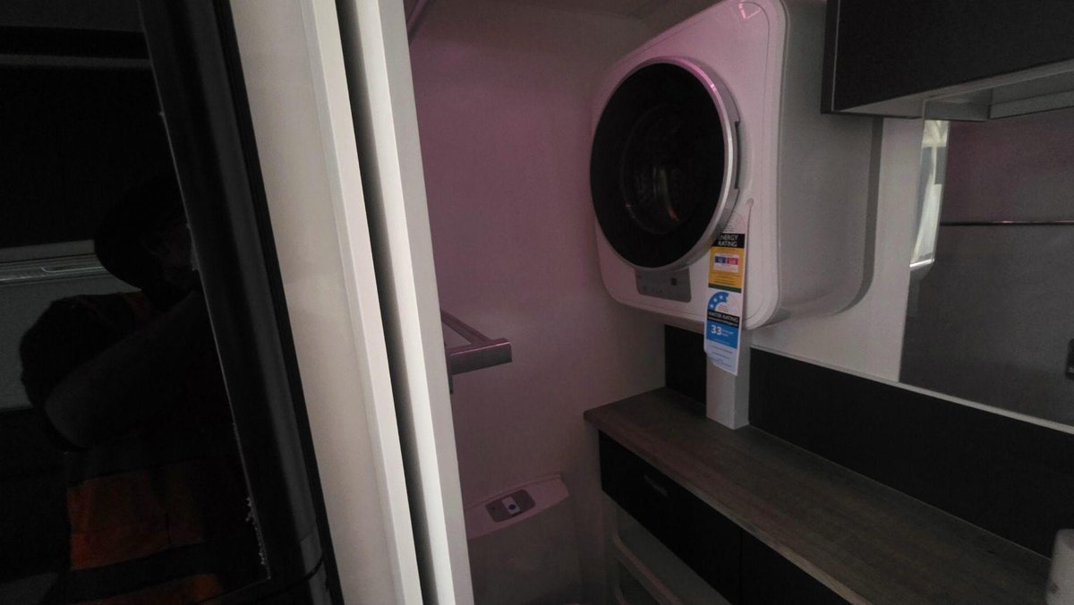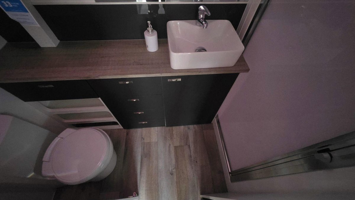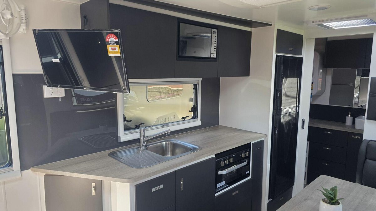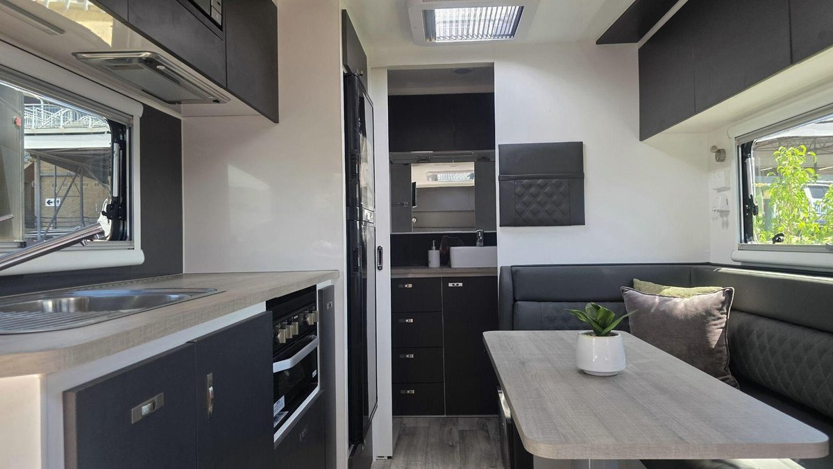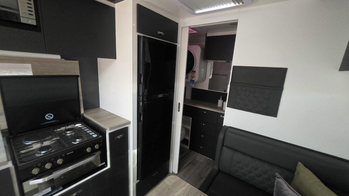 Inside, this van offers a bright, functional layout with a comfortable island bed, a cosy dinette and a well-equipped kitchen featuring a large fridge, cooktop, microwave and generous storage. The full ensuite includes a separate shower and toilet, premium fittings and excellent ventilation. With LED lighting, modern cabinetry, quality appnces and a clean, contemporary design, this van is built for when you want dependable comfort and a welcoming space to unwind.