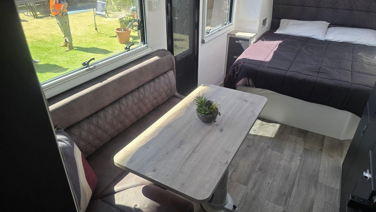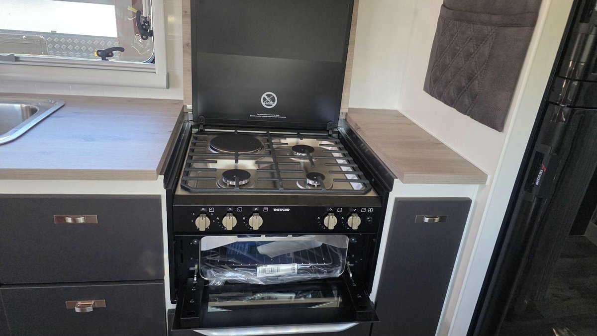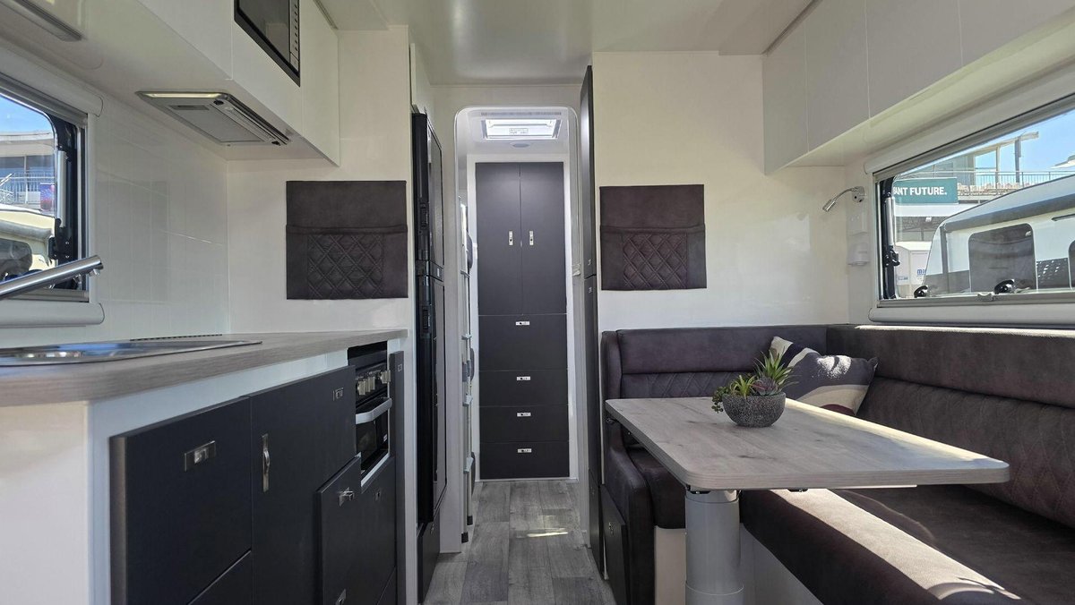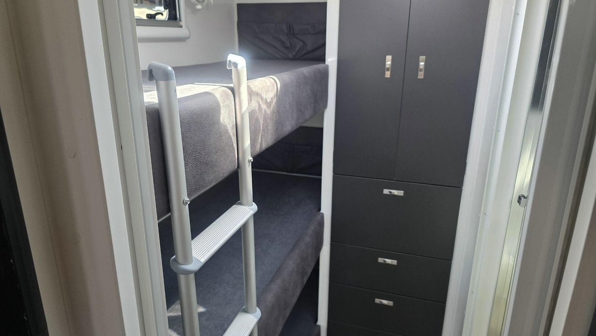 Family-Friendly Layout, Premium Features and a Smart, Comfortable InteriorThis van offers a bright, spacious interior featuring a comfortable island bed for the adults and well-designed bunks for the children, giving everyone their own space to unwind. The stylish dinette creates a warm spot for meals or downtime, while the fully equipped kitchen includes a large fridge, cooktop, microwave along with excellent storage so that making meals on the road is a joy. The full ensuite—with a separate shower and toilet—adds privacy and convenience, and the dual-axle design ensures smooth, stable towing across a wide range of conditions. With premium cabinetry, LED lighting, excellent insulation and modern finishes throughout, this van is built for when you want comfort, rebility and family-friendly touring in one complete package.