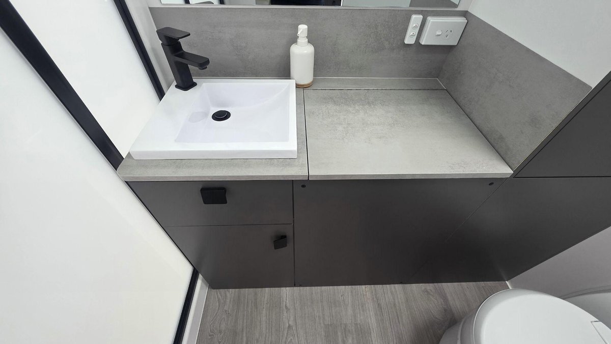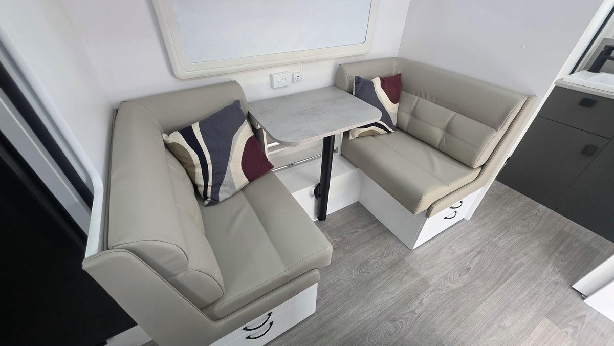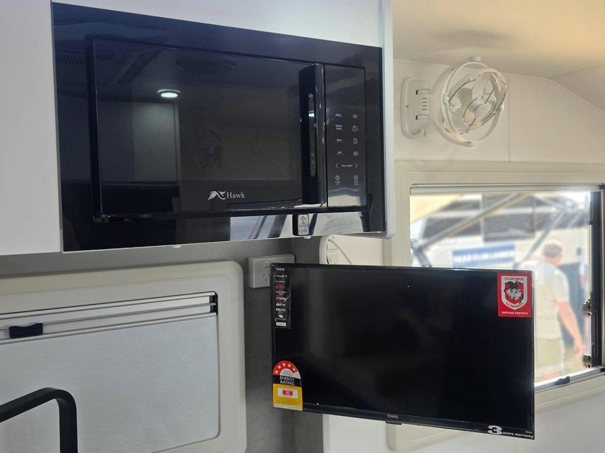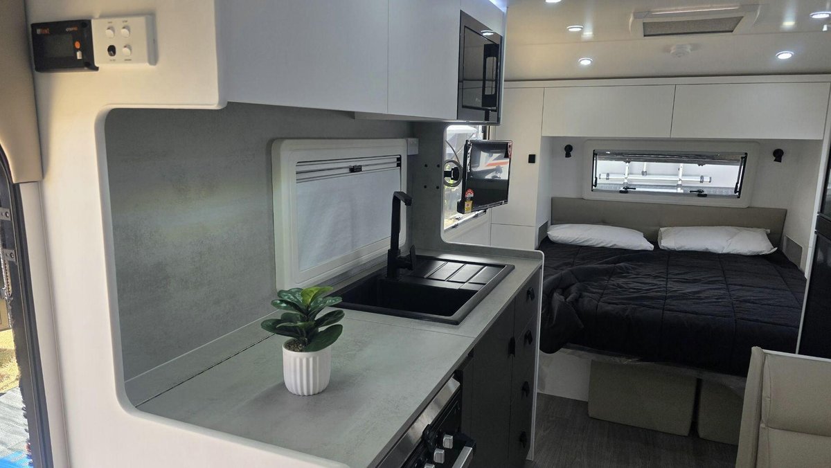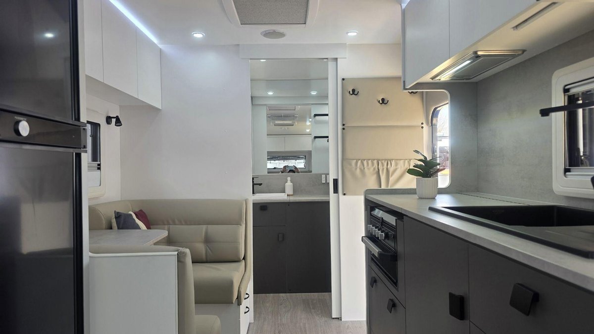 Smart Layout, Premium Features and a Comfortable, Bright InteriorThis van offers a well-designed interior featuring a comfortable island bed, a stylish dinette and a fully equipped kitchen with a large fridge, cooktop, microwave and great storage that makes your kitchen space feel like a home away from home. The washing machin and efull ensuite - with a separate shower and toilet—adds privacy and convenience, while the dual-axle design ensures smooth, stable towing experience. With premium cabinetry, LED lighting, excellent insulation and modern finishes throughout, this van is built for when you want comfort, rebility and relaxed living in one complete package.