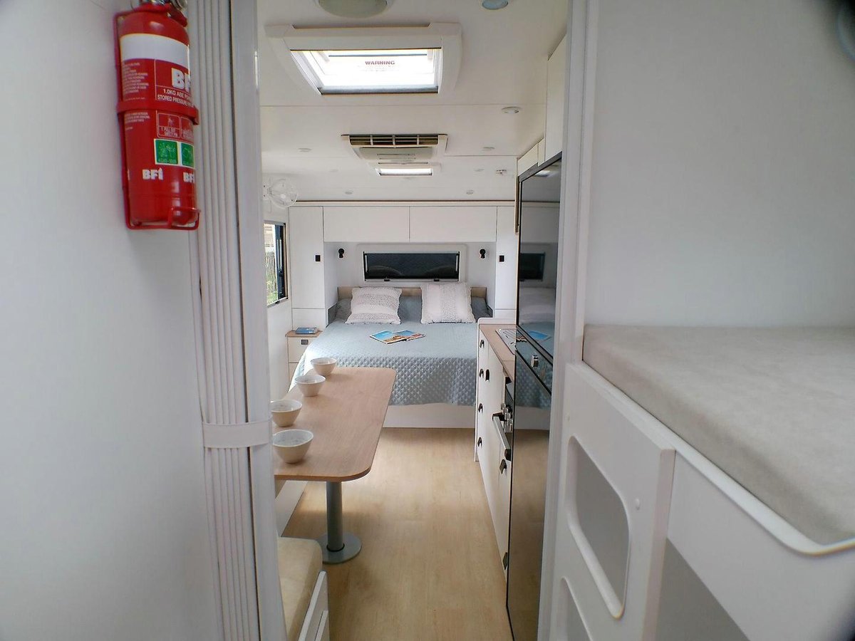 Separate shower & toilet: Not a combo unit Top-load washing machine: Essential for long trips with kids Exterior Features Double-glazed windows: With integrated blinds and flyscreens Picnic table: Perfect for outdoor meals Aussie Traveller roll-out awning: Shade and comfort for outdoor living Lifestyle Benefits Perfect mid-sized family van: Spacious yet easy to tow Dual-axle stability: Ideal for long WA touring Premium construction: Built to last with strong resale value Full ensuite + queen bed + bunks: Comfort without needing a larger 22–24 ft van Excellent value: A modern, well-equipped family caravan with strong Austran build quality Summary This 2025 Franklin Core 215 (2-bunk) dual-axle is a spacious, well-built, and highly practical family caravan. With its rocker-roller suspension, queen island bed, full ensuite, L-shape lounge, 180L fridge, washing machine, solar system, and premium cabinetry, it delivers exceptional comfort and capability for your WA family touring. Easy to tow, easy to live in, and built to last — it’s the perfect choice for families wanting a reble, modern caravan.