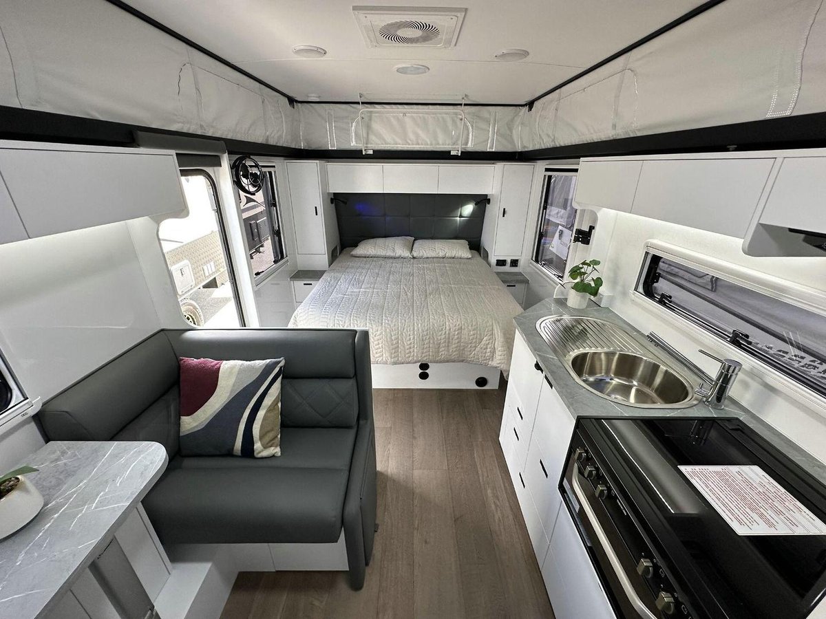 Goldstream are offering a state of the art composite panel solution which has been developed by our team bringing Goldstream RV into the next generation of RV’s using a smart composite solution now available across our Pop top and Caravan range. This now offers superior performance characteristics over traditional builds and includes benefits listed below. Available on all Models & Packages, Adventure Pack, Panther or Rhino.