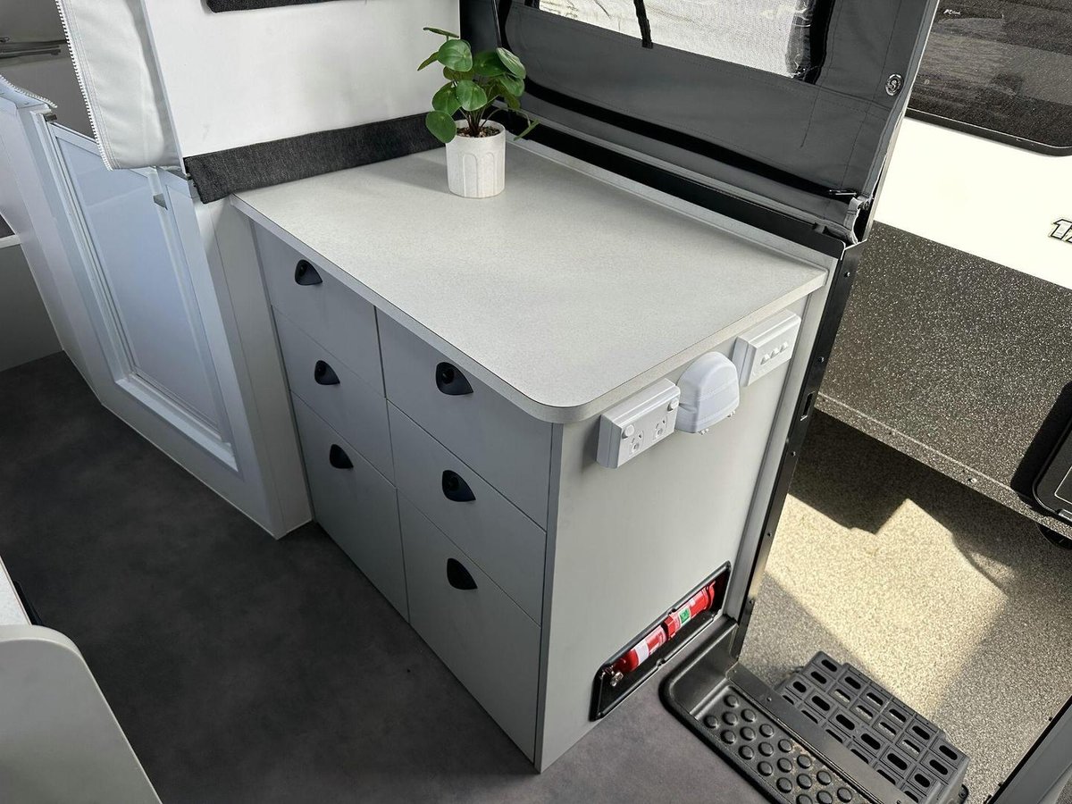 This van offers a bright, open interior with large slide-out beds, a roomy dinette and a well-designed kitchen featuring a fridge, cooktop, microwave and plenty of storage for when you want to prepare meals on the road. This 3ST provides excellent space for families or couples wanting extra room, while the premium build quality ensures durability on every trip. With its strong chassis, smooth towing performance, quality cabinetry, LED lighting and excellent ventilation, this van is perfect for when you want comfort, practicality and rebility in one well-equipped package.Enquire Now — This Wing 3ST Will Not Stay Available for Long