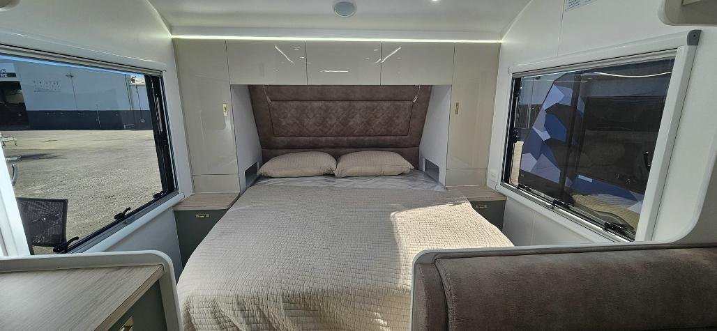 We have cool, modern, and unique caravans available in Australia: QLD (Queensland), NSW (New South Wales), SA (South Australia), WA (Western Australia), and VIC (Victoria). Our available sizes are: 18ft, 19ft, 20ft, 21ft, and 22ft. We have 2 berth, 3 berth, 4 berth, 5 berth. Enquire for floor plans of each stock.
