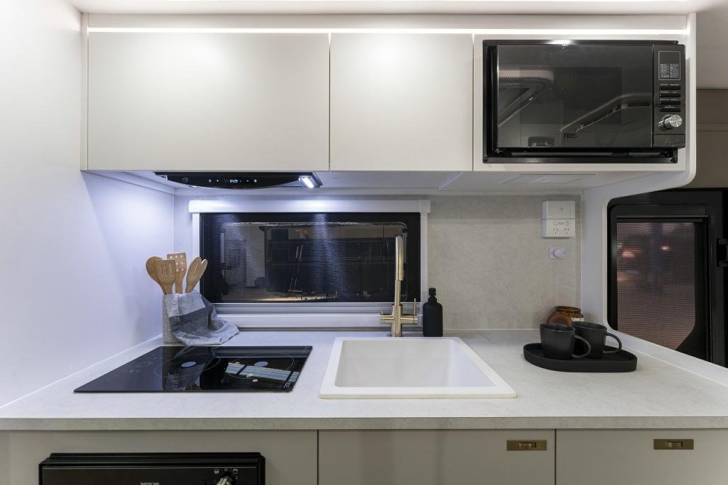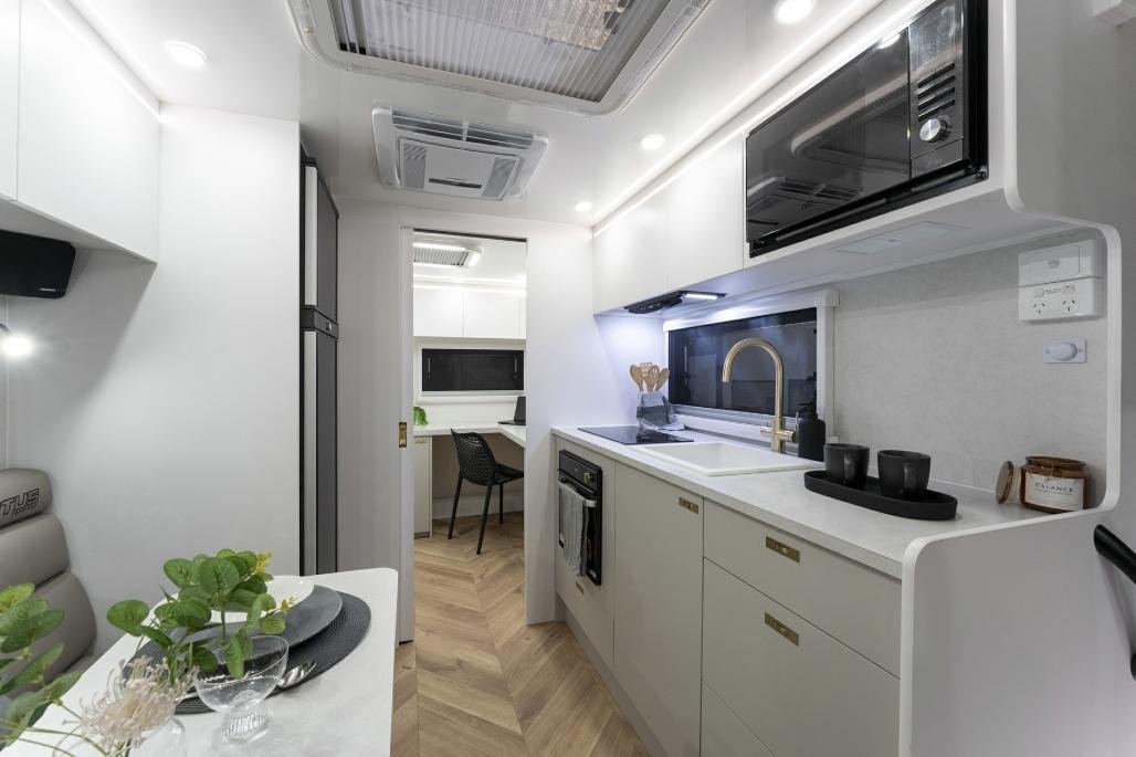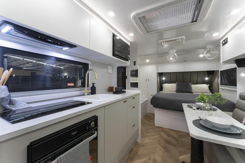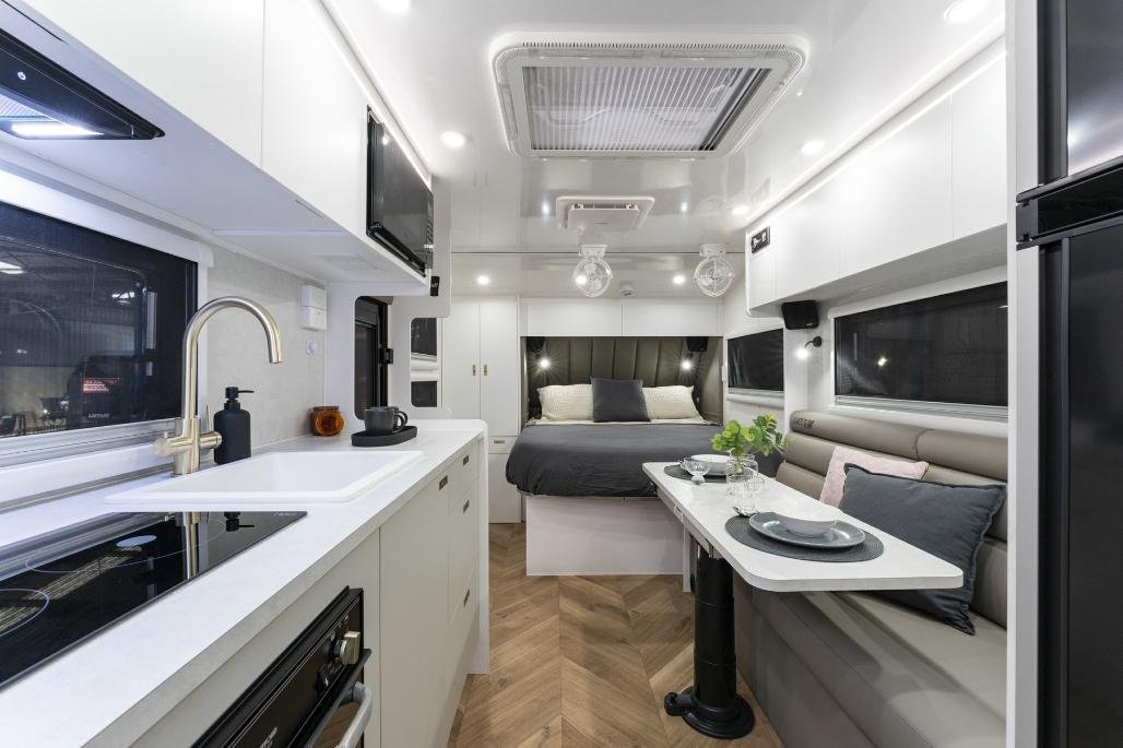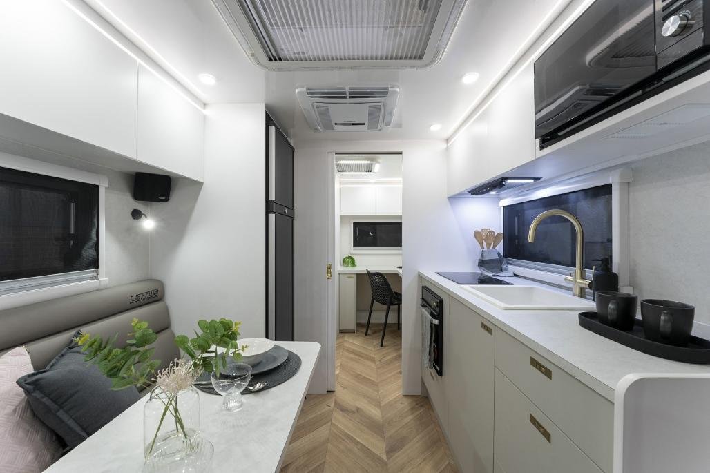 • Stylish, modern furniture with Lotus Caravans unique interlocking cabinetry