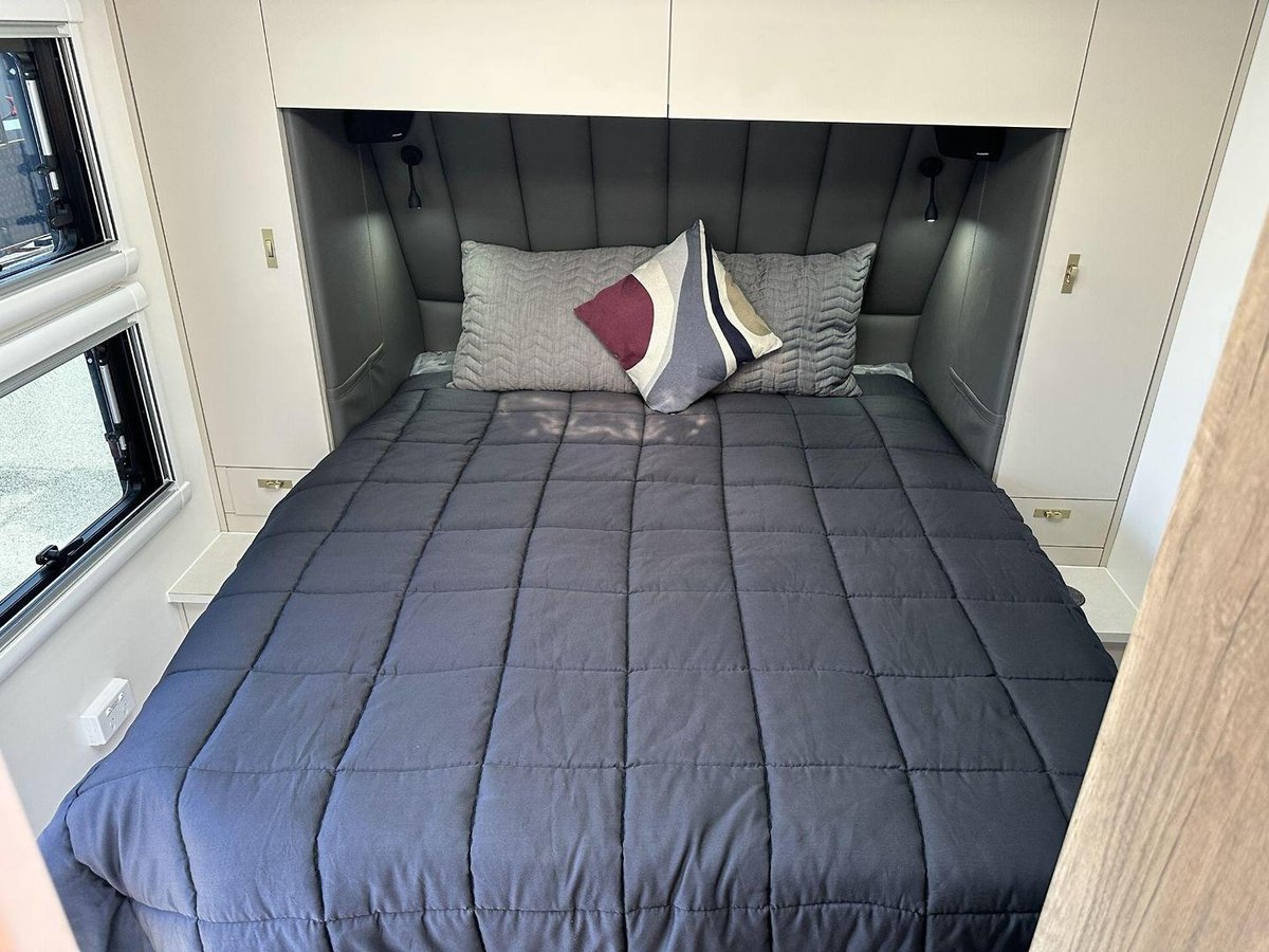 Elevate your travel experience with the Lotus Freelander 239CL—a caravan that redefines comfort and style on the road. Featuring a spacious club lounge for relaxing or entertaining, and a thoughtfully designed centre ensuite for added privacy and convenience, the 239CL blends premium living with practical design. Inside, you’ll find high-end finishes, a fully equipped kitchen, and ambient lighting that creates a warm, inviting atmosphere. Built with Lotus Caravans’ signature craftsmanship, the Freelander 239CL is perfect for those who seek luxury, space, and sophistication wherever they roam.