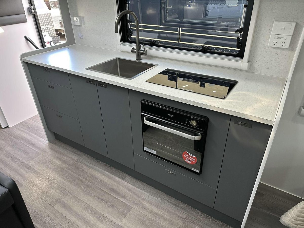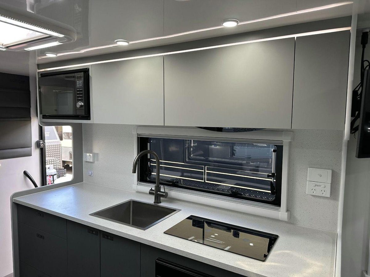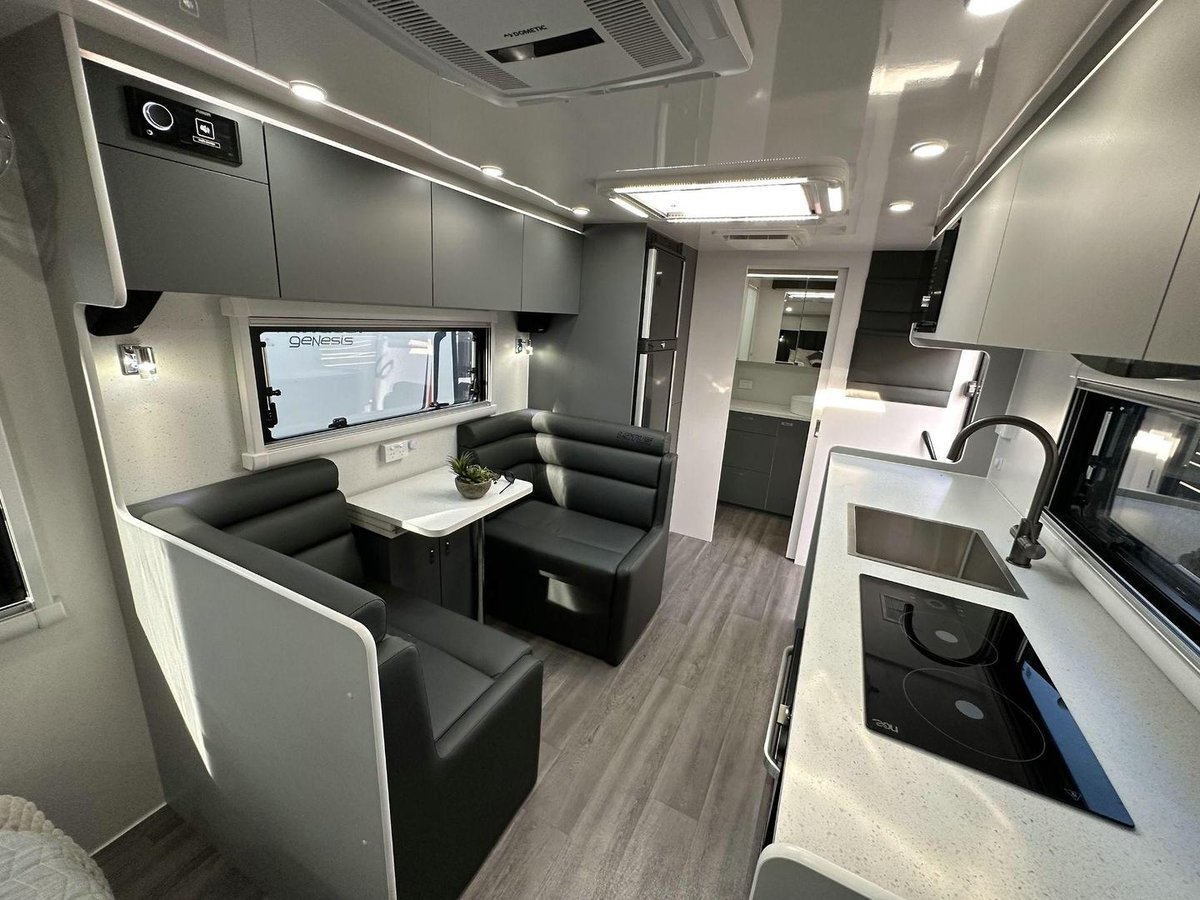 Immerse yourself in pure indulgence as you enjoy endless hot water, reverse cycle air conditioning, and a gourmet kitchen that elevates your on-road living. The Freelander’s versatile floorplans and customisable options provide flexibility to suit your unique needs. Experience the freedom of off-grid living with its advanced battery system and ample lighting. Get ready to embark on unforgettable journeys with the Freelander as your trusted companion.