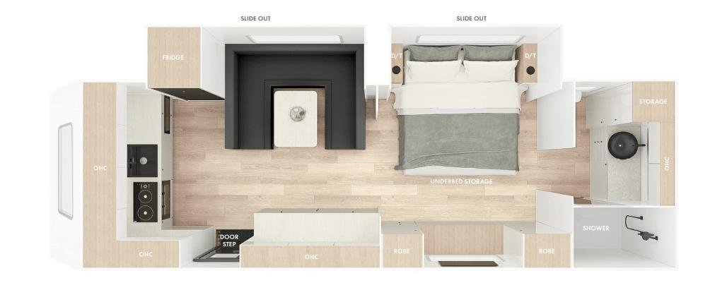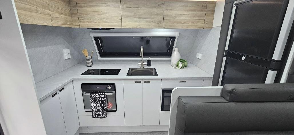 Introducing the Hollywood, the epitome of luxury and elegance on wheels. This opulent caravan is designed to provide a truly lavish home-away-from-home experience. Its hybrid frame combines the durability of aluminium and German-made composite ply, ensuring a smooth and comfortable journey.