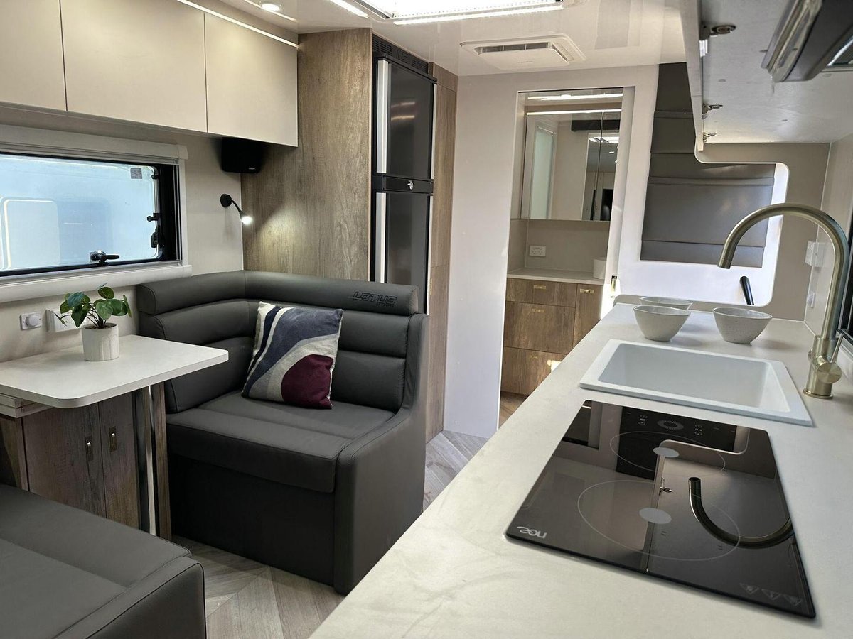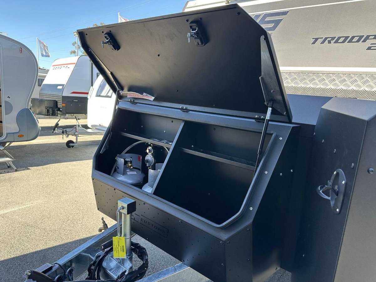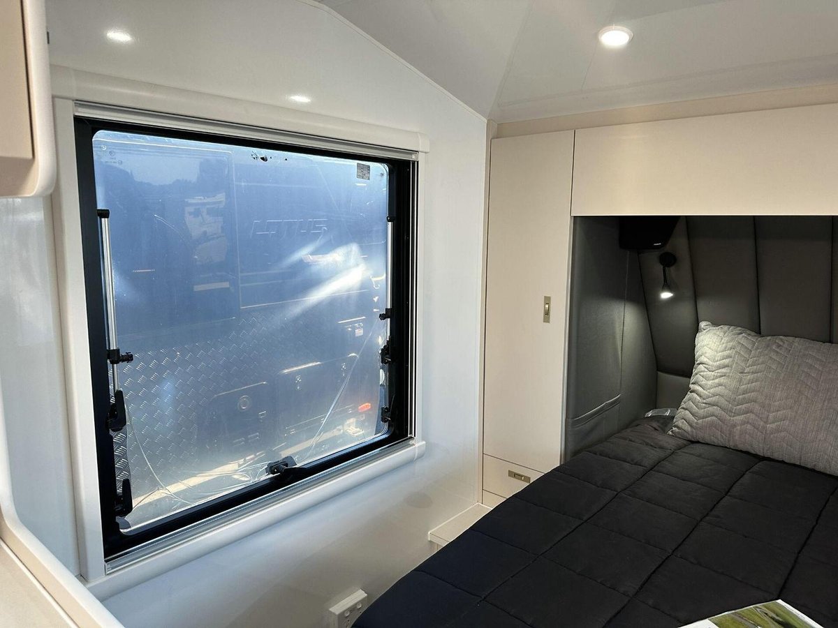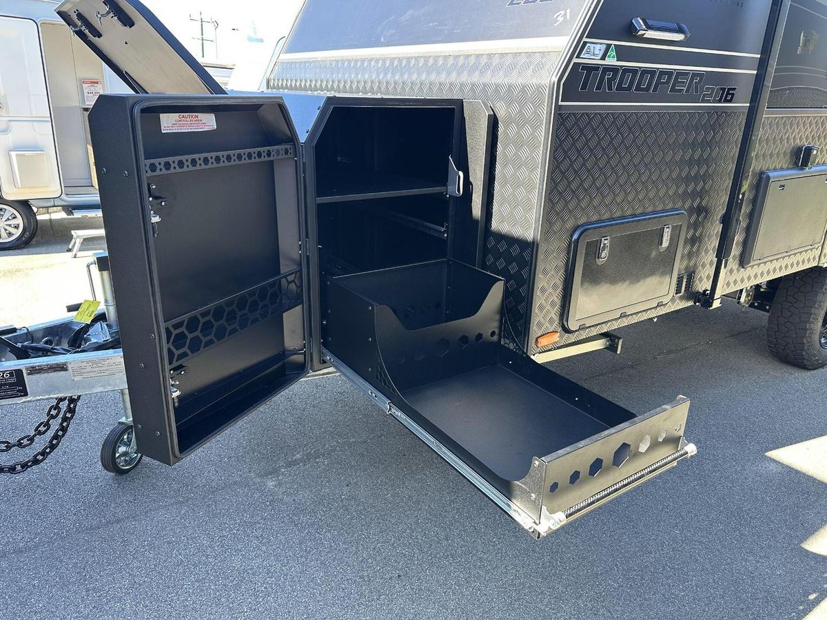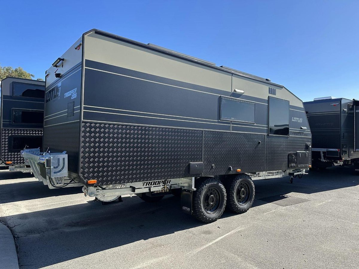 Price Reduced to Clear - Enquire Now And Save $11,300Built for serious touring, the Lotus Trooper TR206KD is a premium 20'6 off-road caravan that blends rugged durability with top-tier luxury. Featuring a hot-dipped galvanised truss chassis, Cruisemaster ATX airbag suspension, and 18 stealth wheels wrapped in Cooper all-terrain tyres, it’s engineered to handle Austra’s toughest terrain. Inside, you’ll find a gourmet kitchen, soft-close cabinetry, reverse cycle air conditioning, and a Fusion entertainment system — all powered by a 600Ah REDARC lithium battery pack and 1000W of solar. With 240L of water storage, dust reduction systems, and Starlink readiness, the TR206KD is perfect for couples seeking remote adventures without compromising comfort.