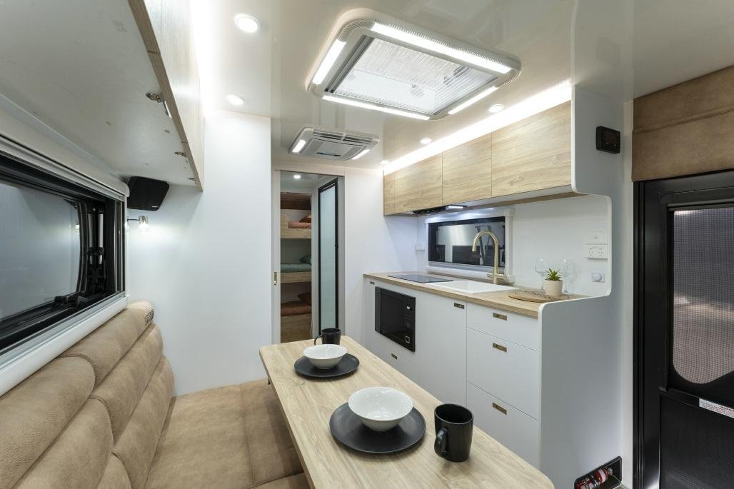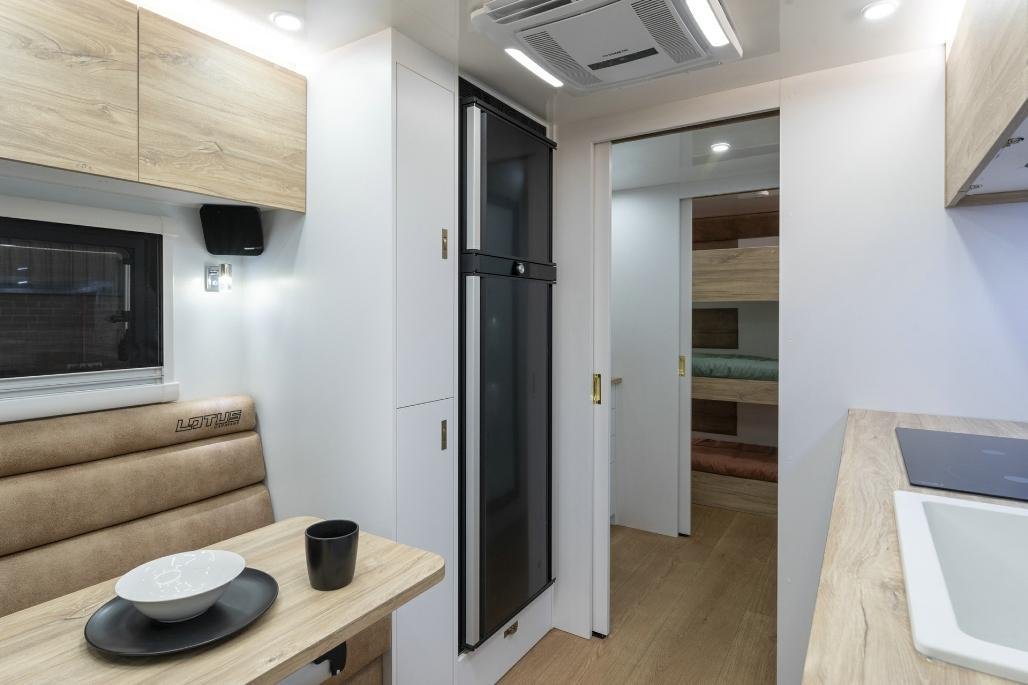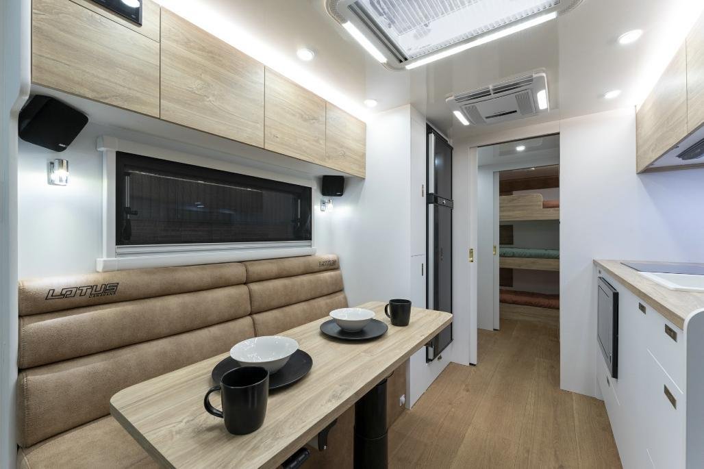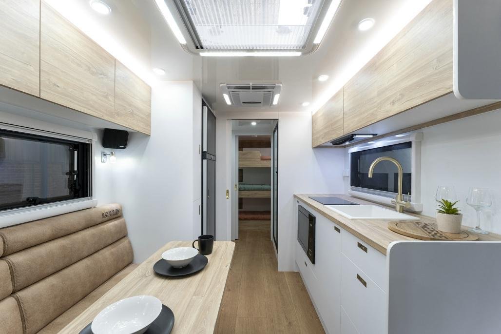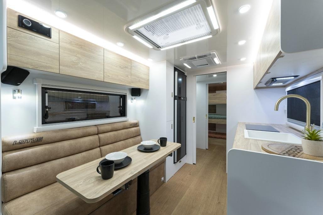 • Stylish, modern furniture with Lotus Caravans unique interlocking cabinetry