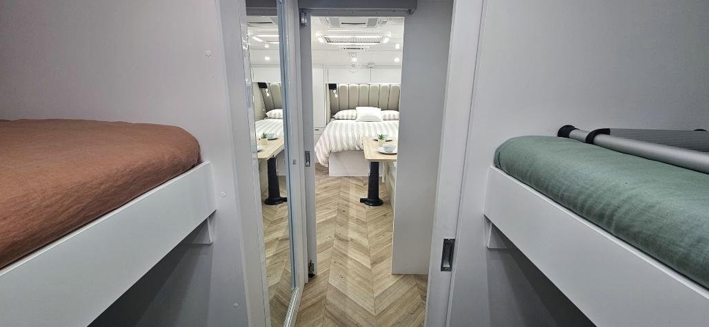 We have cool, modern, and unique caravans available in Australia: QLD (Queensland), NSW (New South Wales), SA (South Australia), WA (Western Australia), and VIC (Victoria). Our available sizes are: 18ft, 19ft, 20ft, 21ft, and 22ft. We have 2 berth, 3 berth, 4 berth, 5 berth. Enquire for floor plans of each stock.