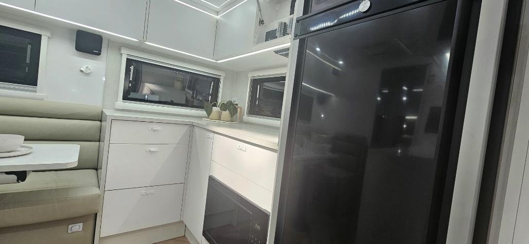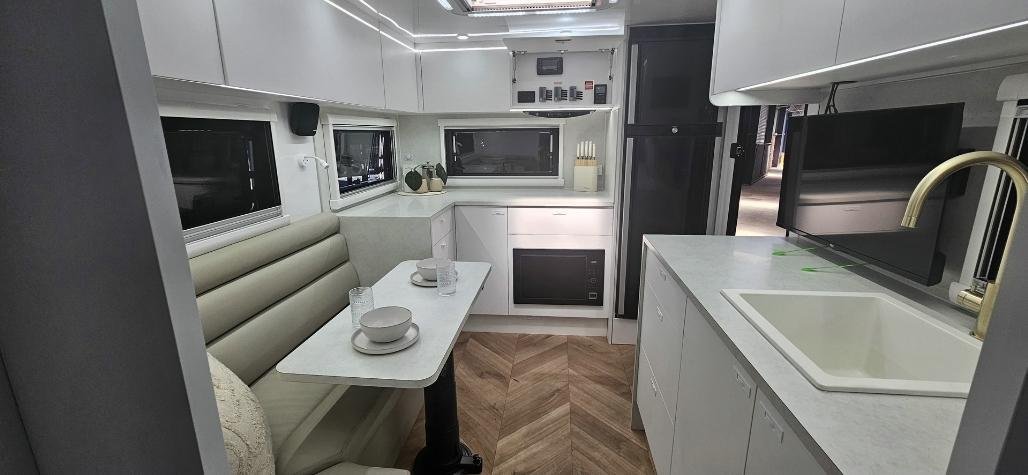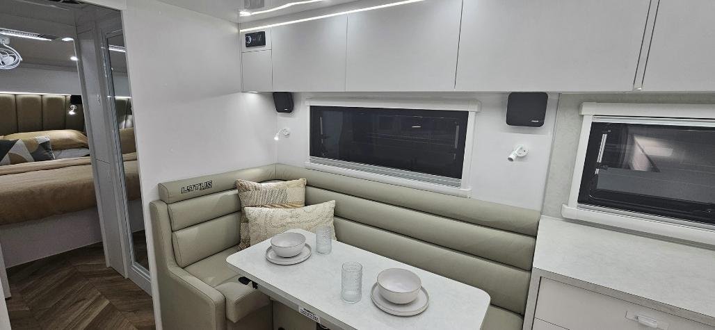 Stylish, modern furniture with Lotus Caravans unique interlocking cabinetry