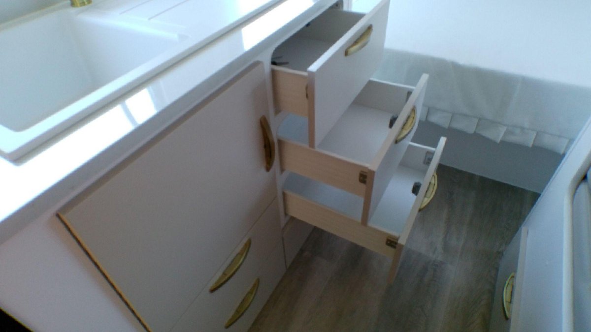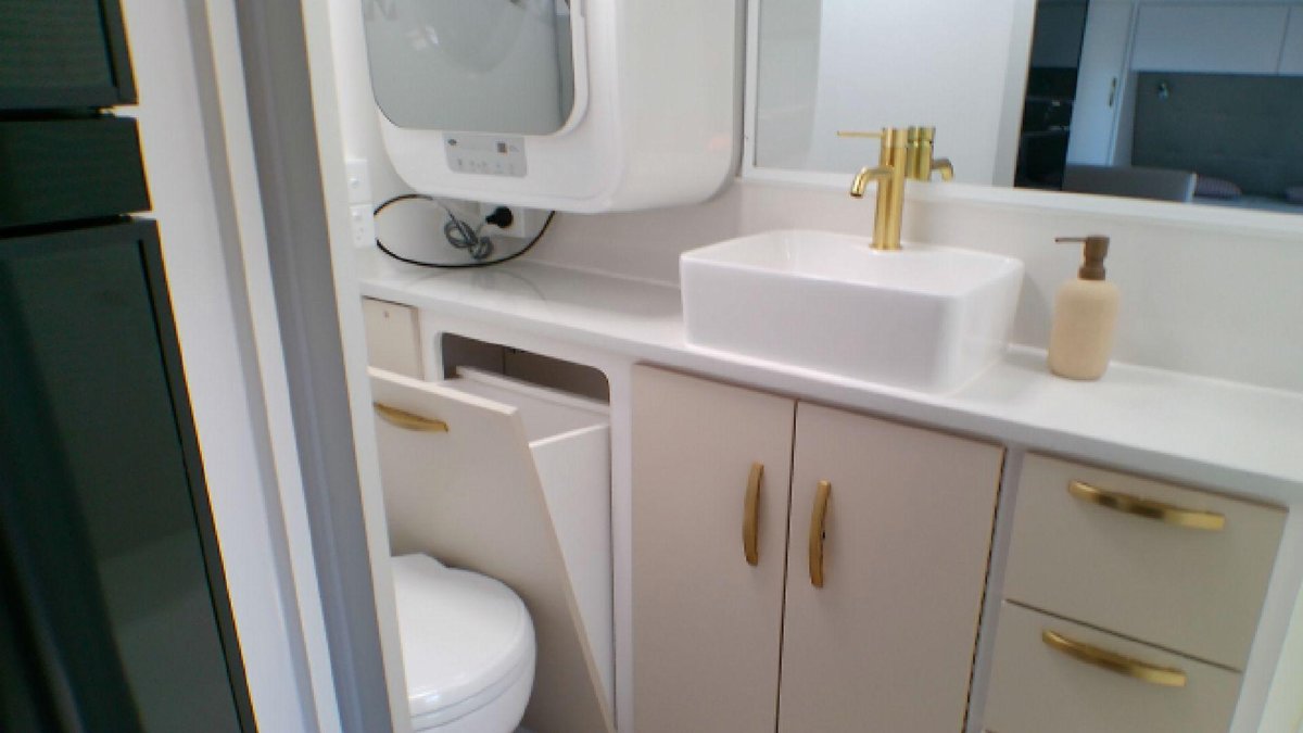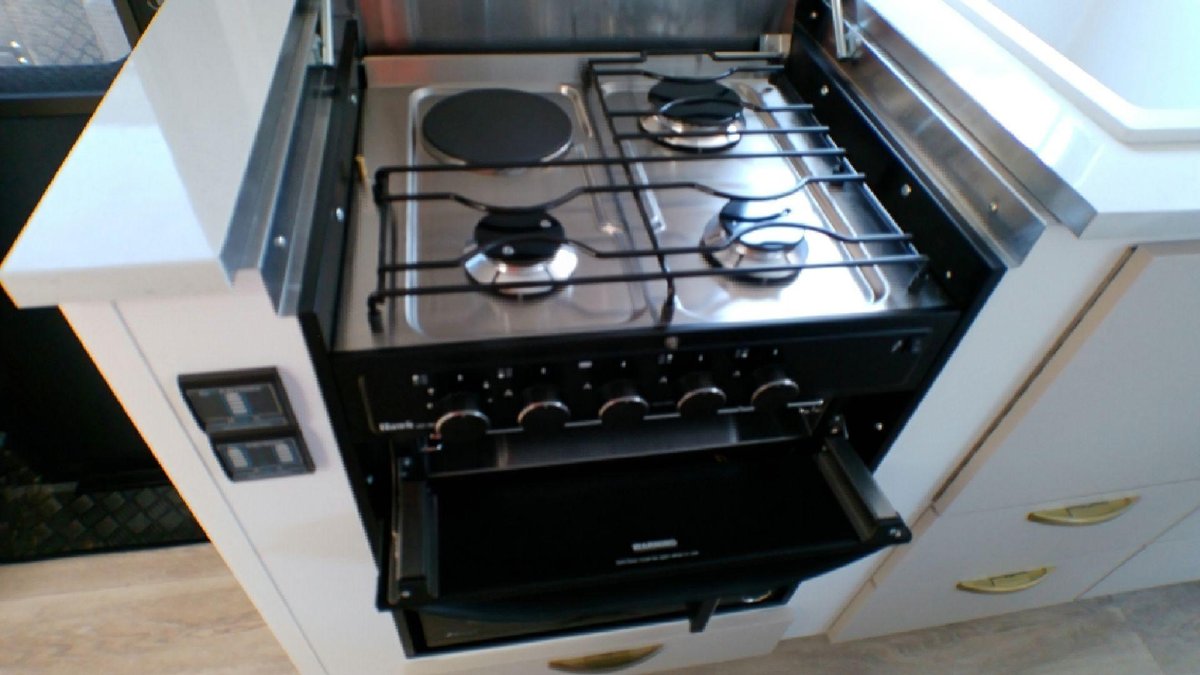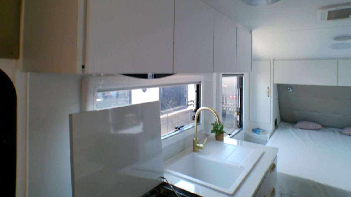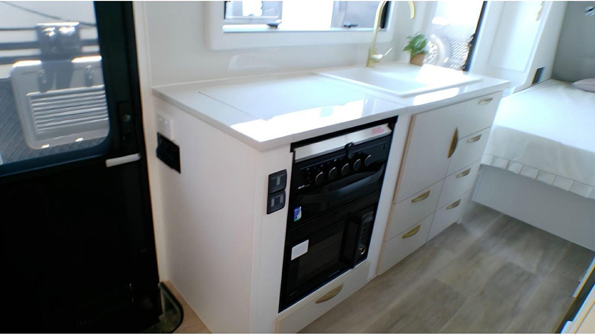 Contemporary interior design: Clean lines, modern finishes, and durable materials Queen bed layout: Comfortable, accessible, and ideal for long trips Spacious seating area: Great for dining, relaxing, or working remotely Strong cabinetry: Built to handle corrugations and long-term use Generous storage: Overheads, wardrobes, drawers, and under-bed space Fully Equipped Kitchen The kitchen is designed for real cooking on the road, with high-quality appnces and smart layout choices.