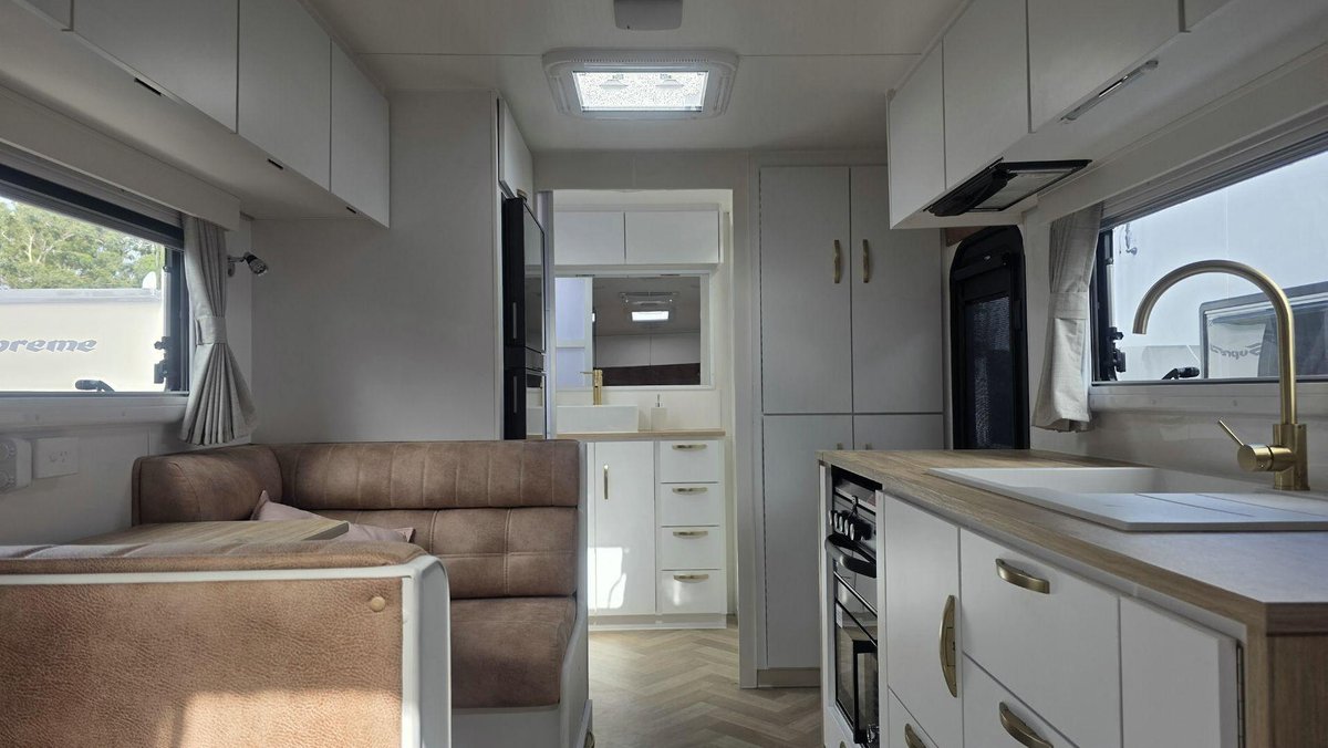 Strong Build, Premium Features and a Fully Equipped Interior Designed for Real TouringThis van showcases Supreme’s high-quality engineering, featuring a robust dual-axle chassis, durable cladding and premium suspension for when you want smooth, confident towing. Externally, this van includes a large rollout awning, tunnel boot storage, gas bottle mounts, quality windows and practical access points that make setup simple and stress-free.