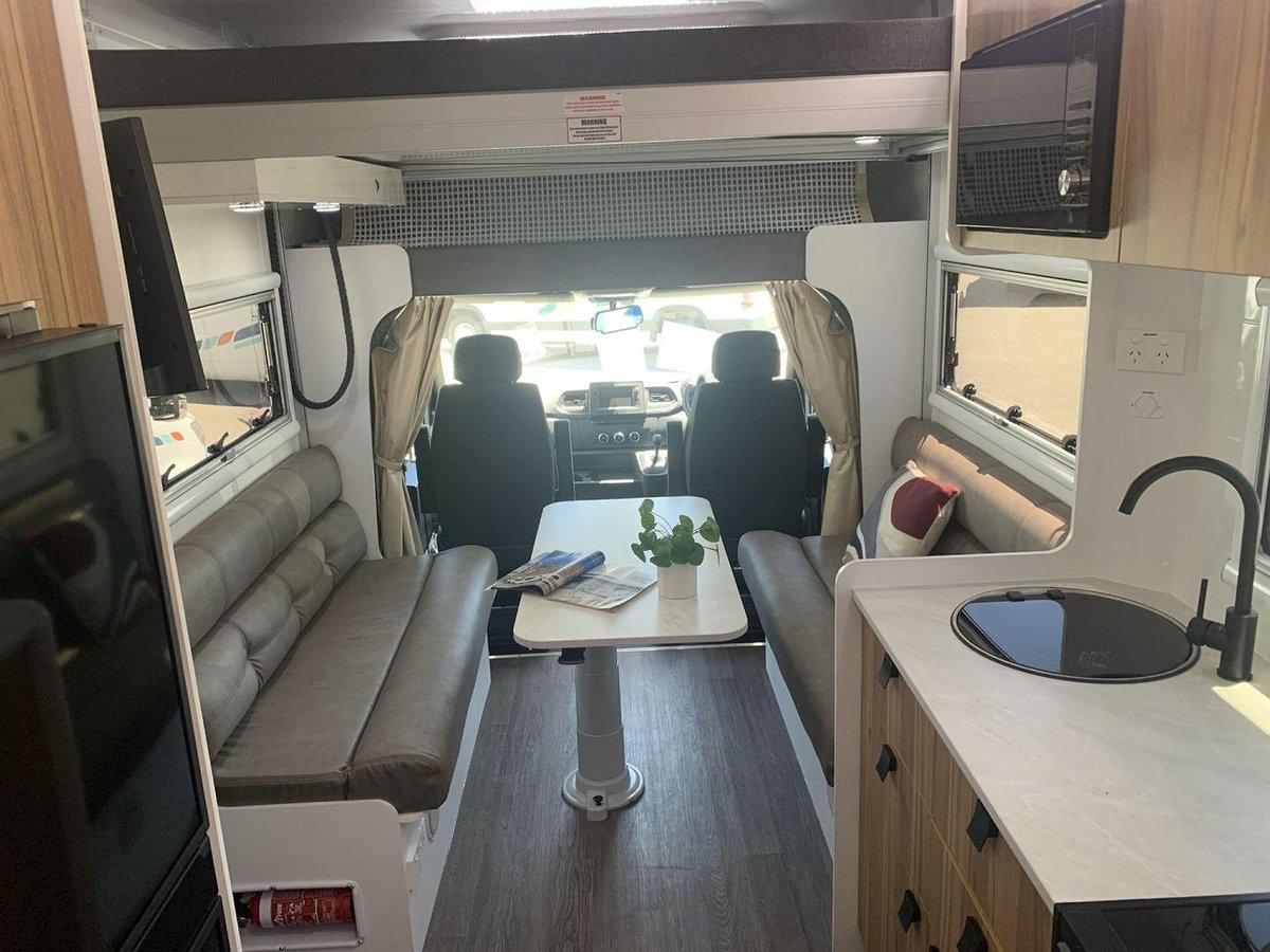 The Windsor Daintree is for the adventurer; offering a spacious dual-purpose layout with a fully appointed kitchen filled with high end appnces and a comfortable dinette designed to maximise your living space. Sit back and enjoy the day from the comfort of your spacious lounge setting. In the evening your queen size bed descends from the ceiling with the press of a button, transforming your lounge into a bedroom. The Windsor Daintree features composite build technology and is powered on the impressive Renault platform.