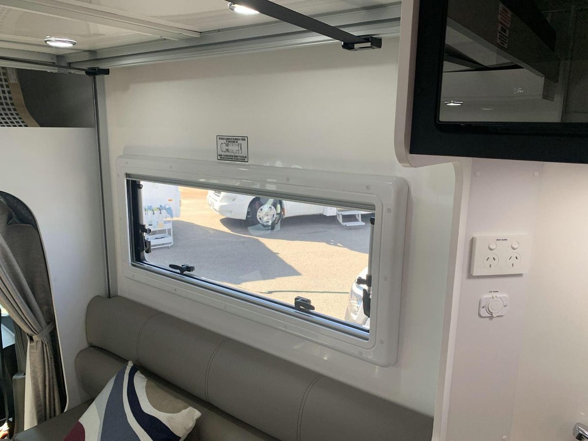 Airconditioning: Reverse cycle roof top Fridge/Freezer: 188 L 12V/240V/Gas Shower: Fully enclosed with flickmixer Stereo System: Stereo player with Bluetooth connectivity Registration Term: 12 months Toilet: Swivel cassette 18 L with electric flush