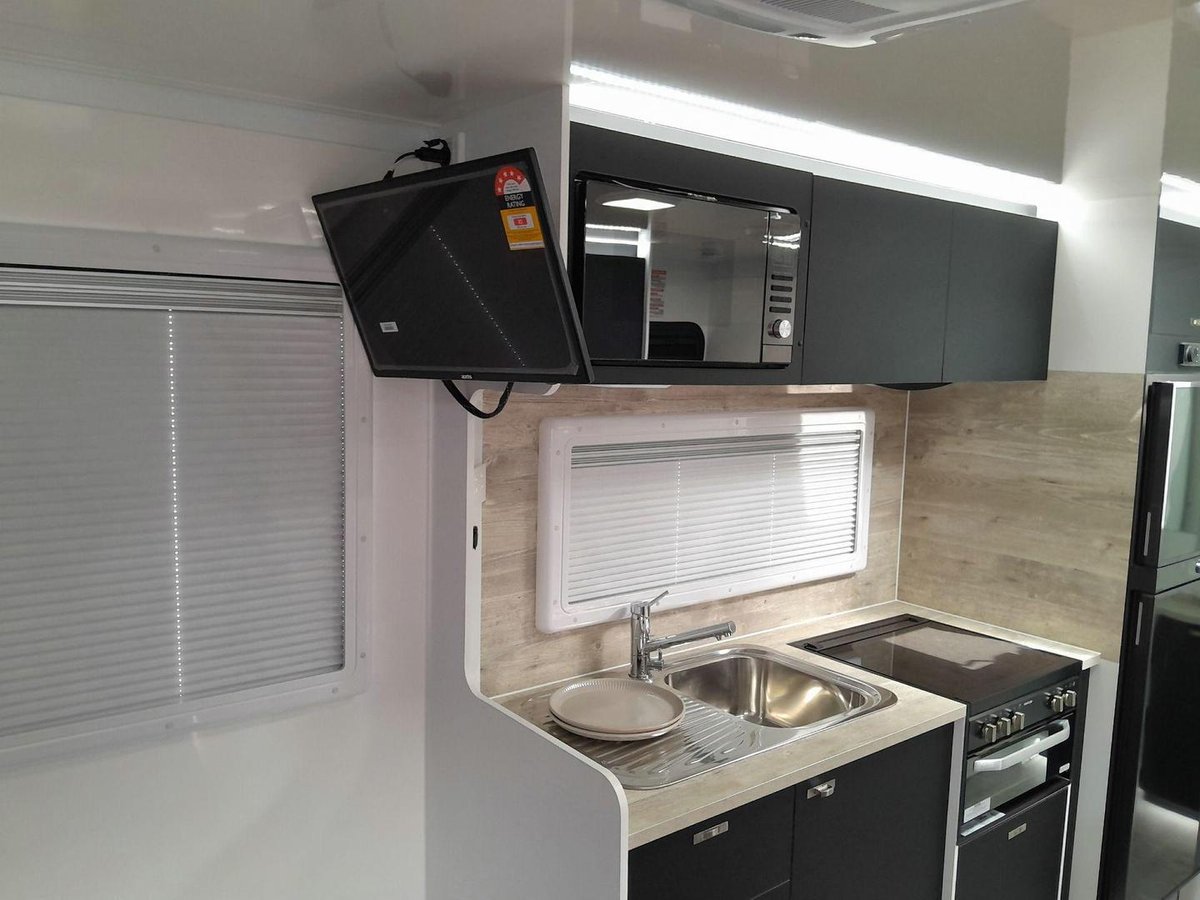 This 17'6 layout is one of Windsor’s most popular for good reason. The rear-dining setup creates a spacious, light-filled living area that’s perfect for relaxing, working, or enjoying meals on the road. The queen island bed provides excellent comfort and easy access, while the well-appointed kitchen includes a large fridge, cooktop, microwave, and generous storage for all your essentials. The full ensuite gives you the convenience of a proper shower and toilet, and the double-glazed windows, reverse-cycle air conditioning, LED lighting, and high-quality cabinetry elevate the entire experience. Built on a strong chassis with durable construction and practical exterior features like a roll-out awning and tunnel boot storage, this caravan is ready for touring across WA and beyond.