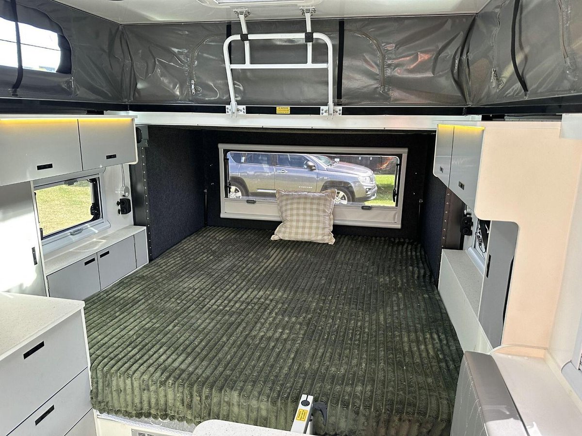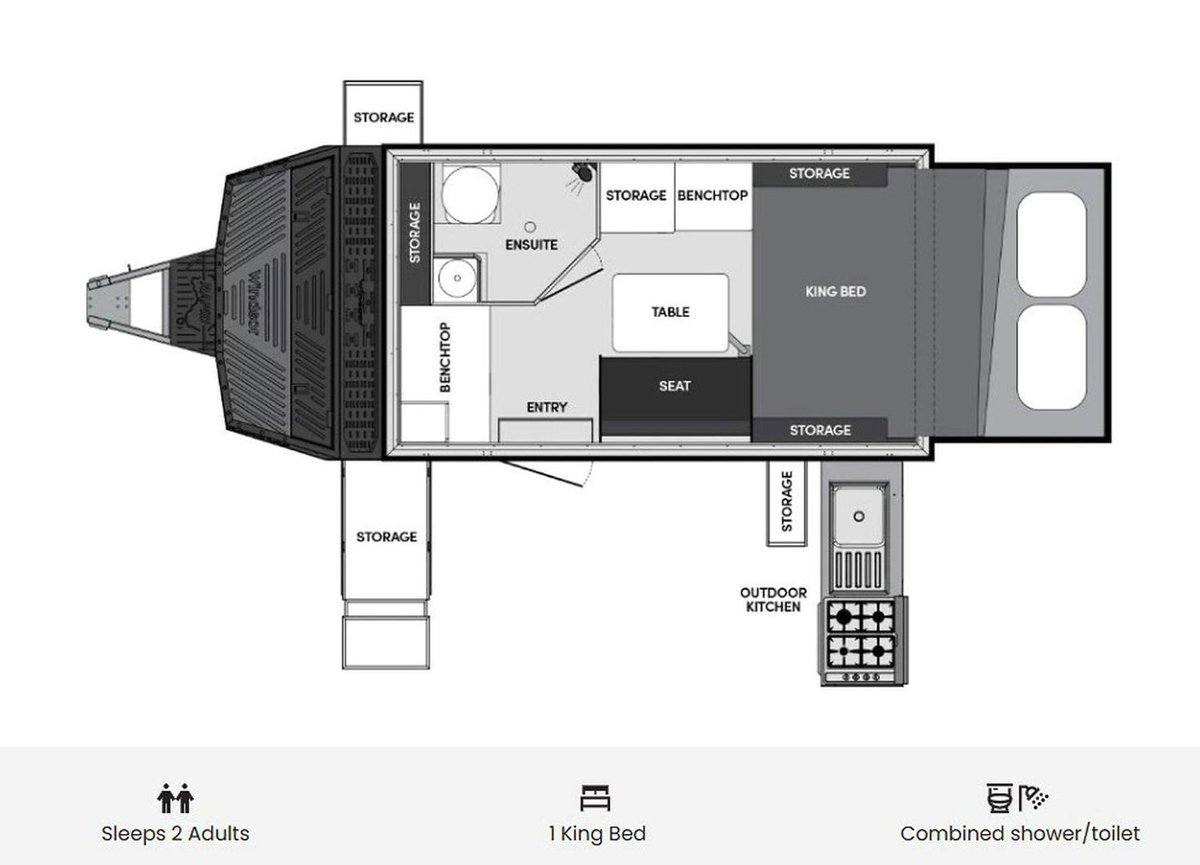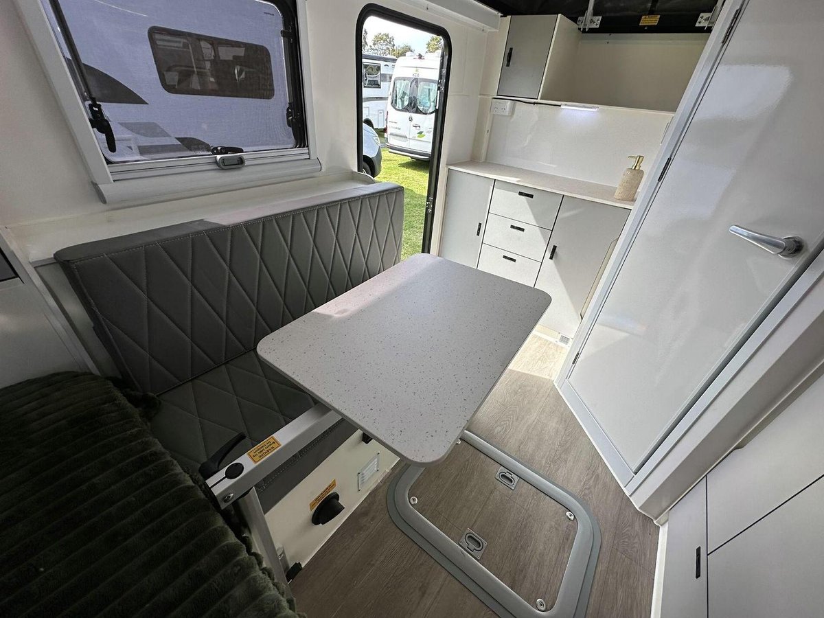 Designed to handle off-road conditions with confidence, it features a robust chassis, independent suspension, and all-terrain tyres. Inside, you’ll find a comfortable king bed, a dinette, combined shower/toilet, and clever storage throughout—proving that compact doesn’t mean compromised. With external cooking and off-grid power included as standard, the Rapid 13 delivers freedom, flexibility, and comfort wherever the road takes you.