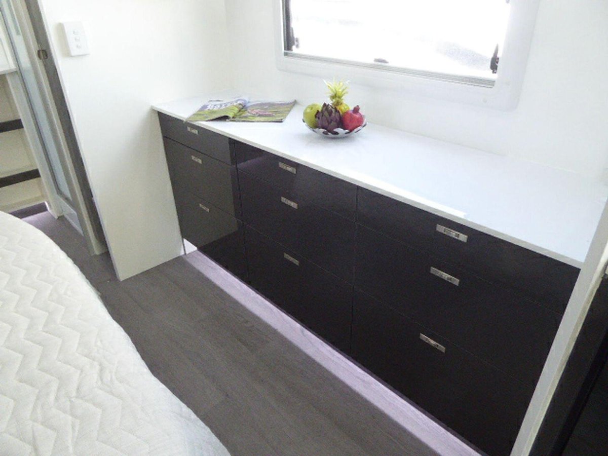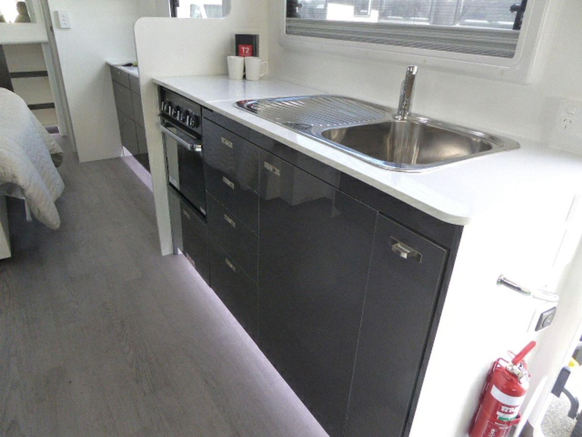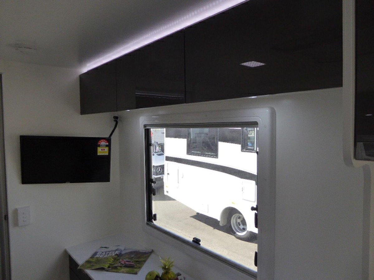 Featuring a full-size bathroom at rear of the motorhome, ample storage internally & tunnel boot externally plus desirable bench space for cooking, dining & everyday use.